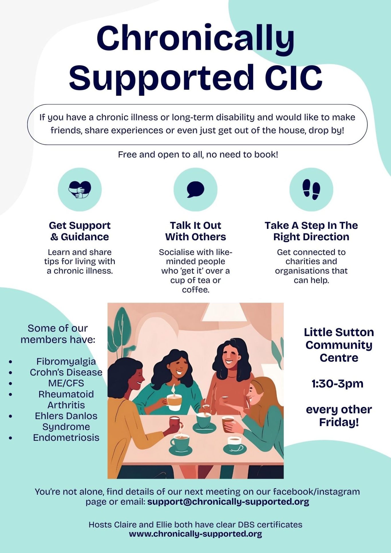 Details of our upcoming meetings can be found on our social media pages, or feel free to email us! We would love to have you and support each other through this journey.